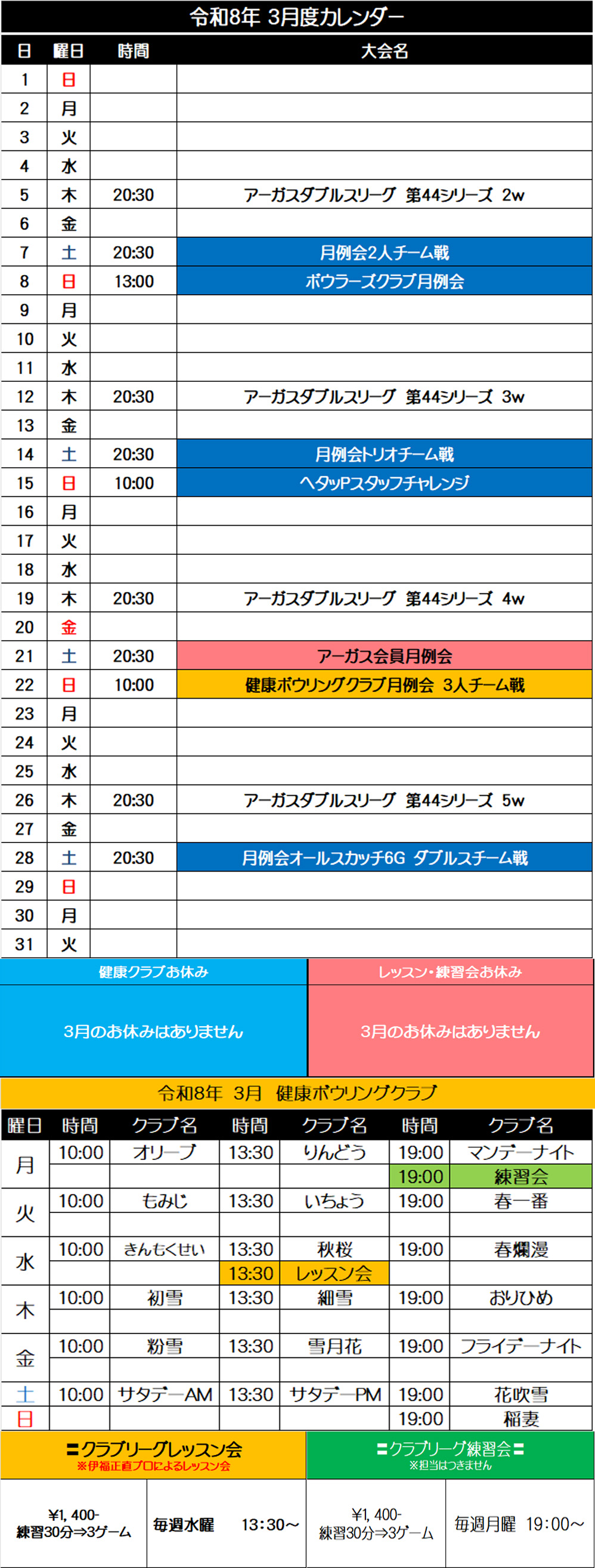 2026年3月スケジュール